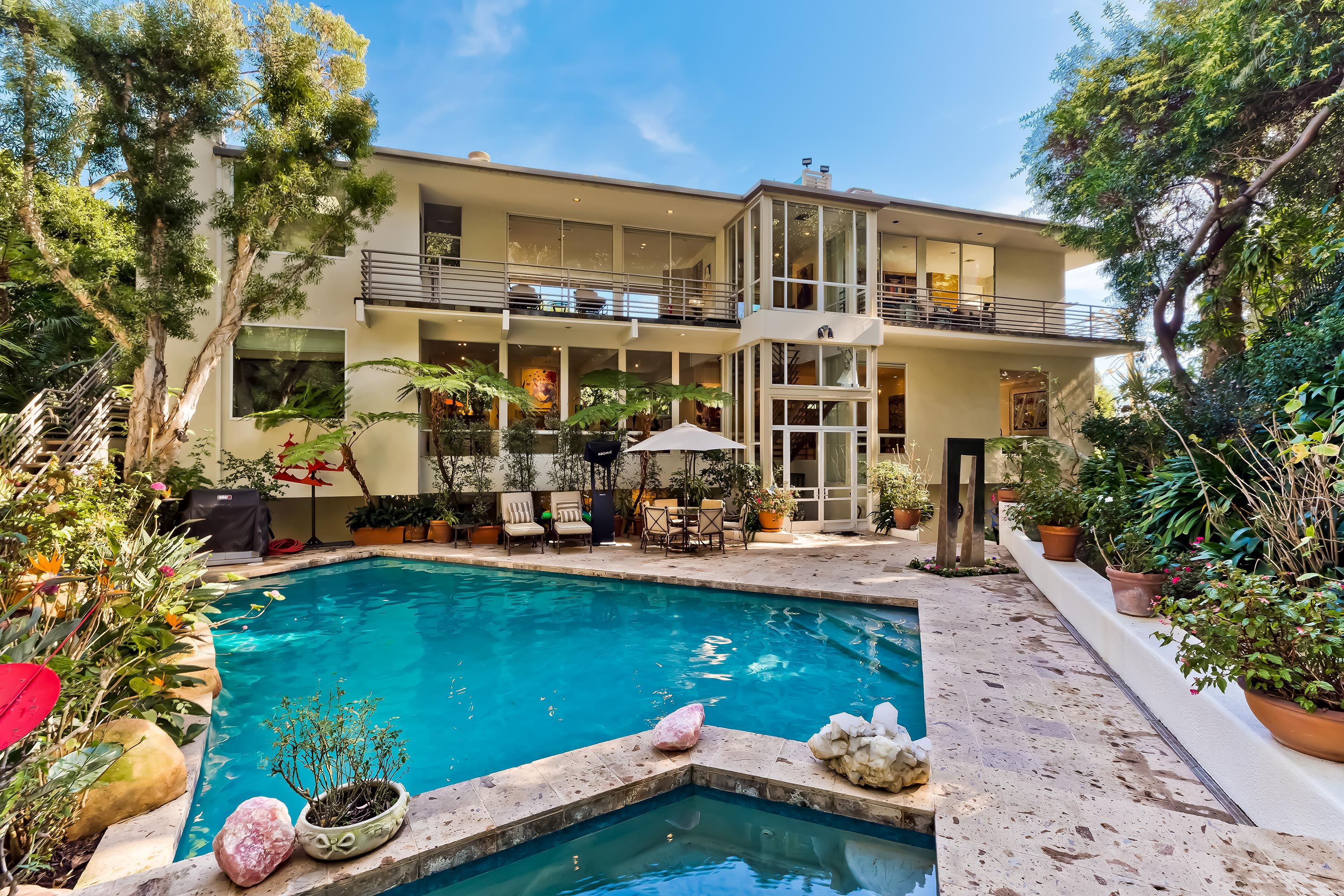 Enter this secluded, cul-de-sac property through security gates and come into an enchanted garden with gorgeous, mature trees, sparkling pool and entertainment areas a one of a kind experience! This gorgeous, gated estate home sits on nearly one acre, north of Sunset, in prime Brentwood and is an entertainers dream. The open floor plan includes floor to ceiling windows throughout the house for beautiful lighting from dawn to dusk, a Chef's kitchen, formal dining room, family room with breakfast area; an office and a gym (each could be bedrooms) and an owner's suite with beautiful views of the property with a patio, walk-in closets and a redone master bathroom. The house features high ceilings, extra large rooms with a combination of stone, hardwood floors and carpeting. Each of the 4 family bedrooms is en-suite. The "secret garden" greets you as you enter, and the sparkling pool and spa are so inviting! Focused on beauty, security, gardens, entertainment and everyday living, this house has it all. Completely private, this home provides for today's lifestyle, while offering peace and tranquility.